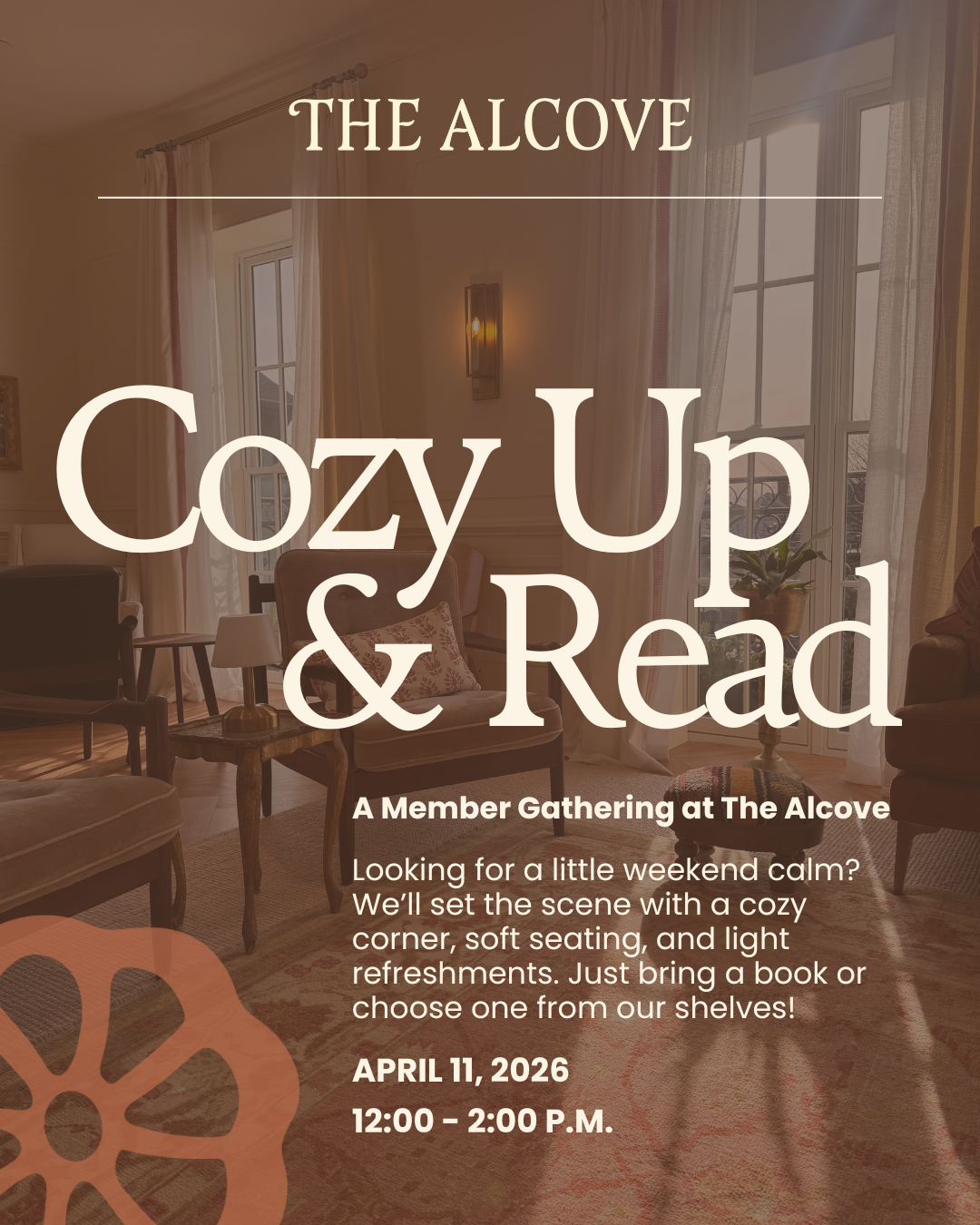 Join us for Mix and Mingle, an intimate members-only gathering on Saturday, February 21 from 1–3 p.m. at The Alcove. This is a relaxed, welcoming space to connect over light refreshments and meaningful conversation.